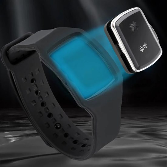 Браслет от насекомых данной модели имеет форму и внешний вид обычных наручных часов. Эффективность его работы составляет около 80%, заключается в воздействии ультразвука. Звуковые колебания, которые оказывают на насекомых раздражающий эффект, записаны на встроенном смарт-чипе. Звуки можно включать на трех частотах. Сочетание их помогает защититься от контакта с комарами и мошками как в помещении, так и на улице. Максимальная эффективность работы браслета достигается на расстоянии не более 1 метра.