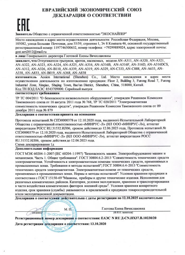 Купить ультразвуковой отпугиватель мух «Экоснайпер AN-A323» в Ялуторовске вы можете, оставив заказ в нашем магазине. Экоснайпер AN-A323: цена, отзывы, подробное описание.